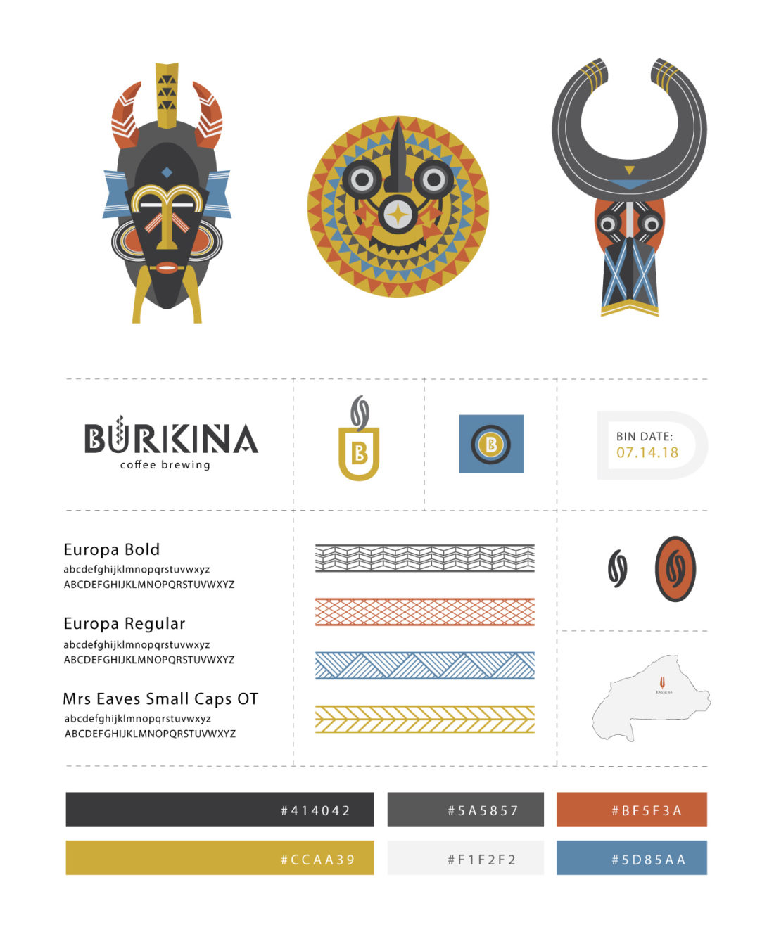 We are competent in our skillset and desire to be perceived as bold, translucent, distinct, and sophisticated. We will achieve a tasteful twist or chicly elevated approach to traditional tribal aesthetics throughout our packaging. These values will allow our products to remain consistent so that our customers might fully enjoy any Burkina product.